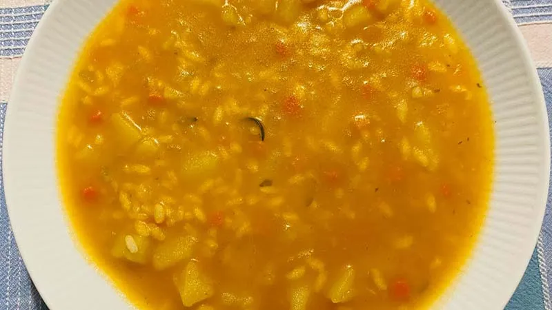 La magia risiede nella trasformazione: le patate si sfaldano lentamente, addensando il brodo in una cremosità vellutata, mentre il riso assorbe i sapori diventando il perfetto veicolo per il fondo di cipolla, carota e sedano, soffritto fino a diventare una dolce base aromatica. La passata di pomodoro, non semplice sfondo, dona una nota fresca e leggermente acidula che taglia la ricchezza, regalando pulizia al sapore. Perfetta per una cena informale dopo una giornata fredda, si offre come piatto unico che sazia senza appesantire, chiudendo con un filo d'olio extravergine a crudo che ne esalta ogni componente con un tocco erbaceo e fruttato.