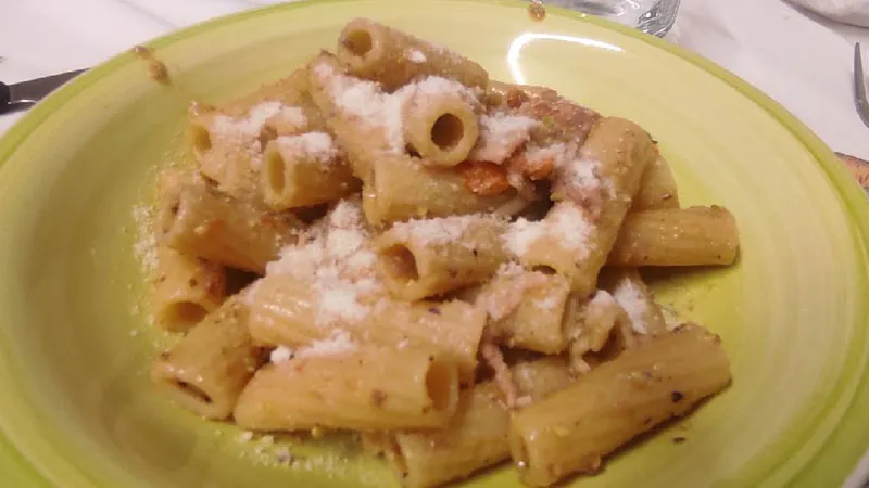Un'armonia di sapori che danza tra l'affumicato e il fresco, dove la pasta diventa il palcoscenico per un incontro audace e raffinato. Questo piatto promette un viaggio sensoriale estivo, capace di coniugare la rustica generosità della cucina italiana con un tocco di eleganza contemporanea. La promessa è un primo che sa stupire, avvolgendo il palato in un abbraccio complesso e appagante.