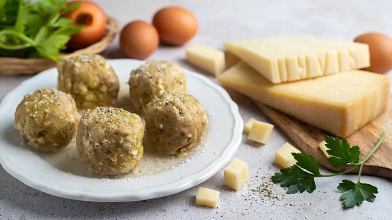Perfetti per una cena informale ma ricca di carattere, i canederli si trasformano in un piatto unico e sostanzioso quando affogati in un brodo caldo e fumante. Il tocco finale di una pioggia di Grana Padano grattugiato e di una noce di burro fuso appena prima di servire li rende irresistibilmente golosi, un vero conforto per il palato e per lo spirito.
