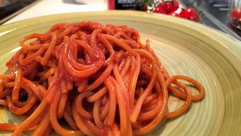 La magia risiede nel contrasto tra la dolcezza concentrata della passata di pomodoro, che si addensa fino a diventare quasi marmellata, e il morso vibrante del peperoncino fresco, temperato solo leggermente dall'aglio dorato e dall'olio extravergine fruttato. Il risultato è una pasta dalla texture unica: esternamente quasi croccante in alcuni punti, internamente al dente e avvolta in una salsa intensamente aderente.