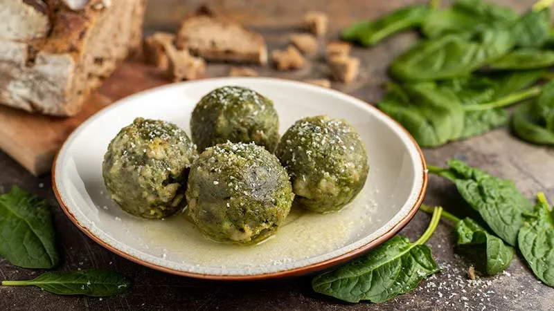 I canederli agli spinaci sono un abbraccio rustico che porta in tavola l'anima genuina dell'Alto Adige, rivisitata con un tocco di verde vibrante. Queste morbide sfere racchiudono la promessa di un comfort food elegante, dove la tradizione incontra una nota fresca e terrosa che sorprende il palato.