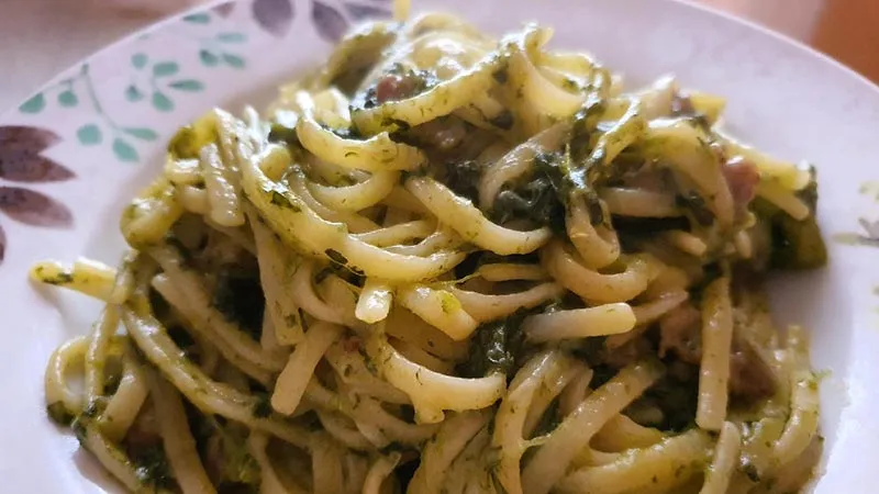 Un abbraccio di sapori rustici e profondi, dove la generosità della salsiccia incontra il carattere deciso delle cime di rapa. Questo piatto promette un'esperienza autentica, capace di trasportare direttamente al cuore della cucina di tradizione, con una ricchezza che sa di casa e di passione. La cottura degli spaghetti direttamente nel sugo non è un semplice espediente tecnico, ma un rito che garantisce una perfetta fusione: ogni singolo spaghetto diventa un veicolo per il concentrato di sapori, avvolto e penetrato dall'essenza del condimento.