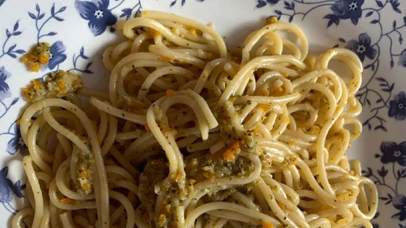 Un abbraccio invernale che trasforma l'umiltà degli ortaggi in un primo piatto di carattere, dove la semplicità diventa profondità di sapore. Gli spaghetti, cotti direttamente nel brodo vegetale, non si limitano a condirsi ma si impregnano dell'anima dolce delle carote e del tono terroso dei broccoli, promettendo una cremosità avvolgente e genuina. La cipolla, appassita lentamente, fonda le note di base, mentre l'olio extravergine a crudo esalta con un tocco erbaceo e pepato.