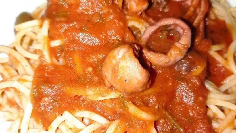 La magia avviene quando i moscardini, cotti nel bianco sfumante del vino, rilasciano il loro succo iodato fondendosi con la passata di pomodoro. Le olive denocciolate, aggiunte a fine cottura, esplodono in bocca con la loro intensità metallica, mentre l'aglio dorato nell'olio extravergine tesse una base aromatica che sostiene senza sopraffare. Ogni elemento mantiene la propria identità: la polpa tenera dei molluschi contrasta piacevolmente con la pasta al dente, in un gioco di texture che invita all'assaggio.