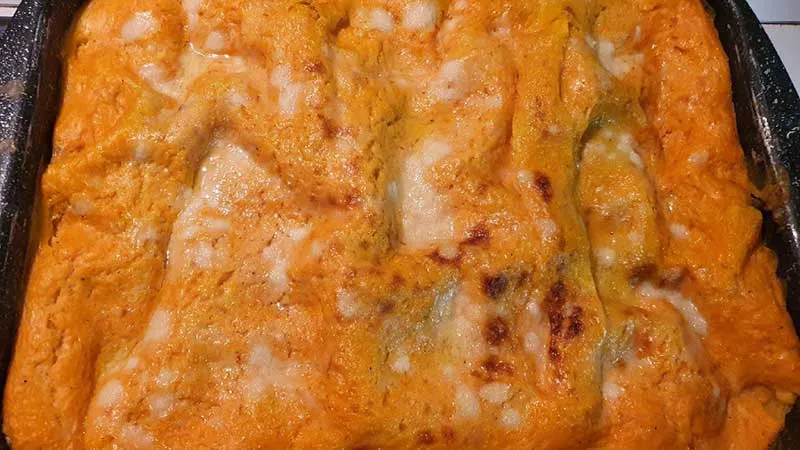 La magia risiede nel dialogo tra la crema di zucca, burrosa e vellutata, e il ragù di manzo dal fondo intenso, esaltato dai cubetti di pancetta che rilasciano note affumicate e croccanti. Ogni strato di pasta assorbe questi umori, mentre la besciamella, aromatizzata con una grattugiata di noce moscata, lega il tutto in una sinfonia di consistenze: fondente, carnosa e morbidamente cremosa.