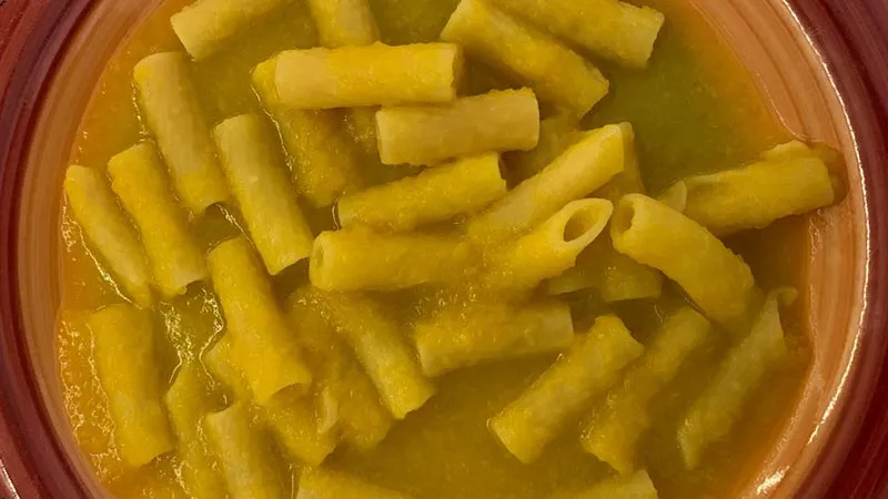 La magia nasce dal dialogo tra la dolcezza carnosa della zucca, che si sfalda in una salsa vellutata, e la sapidità vibrante del Grana Padano grattugiato al momento. L'olio extravergine, aggiunto a crudo, dona un finale erbaceo e pepato che risveglia il palato, mentre la cipolla appassita lentamente costruisce una base aromatica profonda senza mai sopraffare.