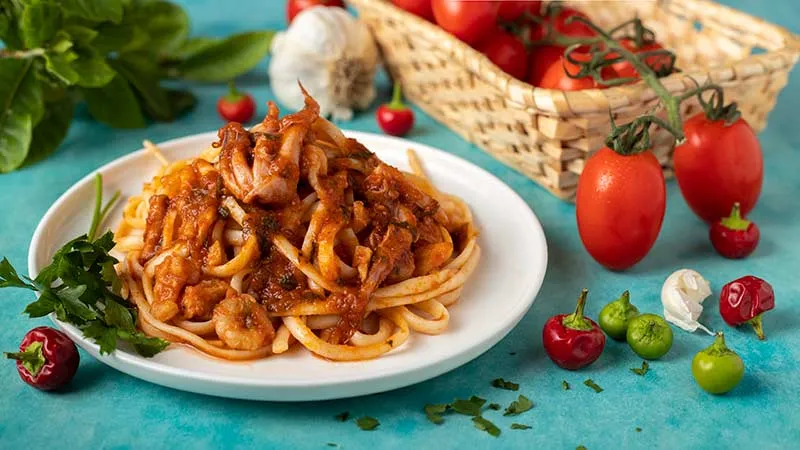 Il segreto risiede nel dialogo tra la dolcezza tenera dei calamari e dei moscardini e la nota metallica, quasi iodata, delle cozze e delle vongole che si aprono in pentola. Il brandy, sfumato al momento giusto, aggiunge una profondità calda che lega i sapori, mentre l'aglio e il peperoncino (se aggiunto) forniscono quel guizzo vibrante che risveglia l'intera composizione.