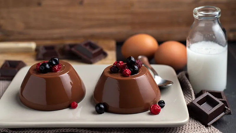 Il budino al cioccolato che conquista per la sua doppia anima: una consistenza vellutata e avvolgente che nasconde un carattere deciso e profondo. È la promessa di un dessert che sa essere insieme comfort food raffinato e momento di puro piacere, dove la semplicità della preparazione si trasforma in un'esperienza sensoriale memorabile. La magia sta nel perfetto equilibrio tra l'intensità ambrata del cioccolato fondente, che fonde in una crema setosa, e la punta vibrante dei frutti di bosco, che interrompe la ricchezza con note acidule e fresche.