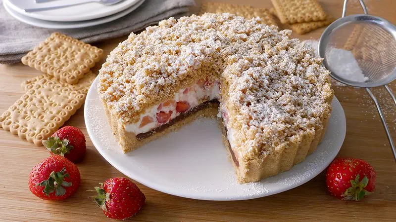 Immaginate un dolce che racchiude in ogni boccone l'essenza della golosità più appagante: la Sbriciolata con fragole e Nutella è un'esperienza sensoriale che alterna con maestria la croccantezza friabile alla cremosità vellutata. Promette e mantiene il perfetto equilibrio tra la rustica genuinità della frutta fresca e l'indulgente seduzione del cioccolato, in un gioco di consistenze che conquista al primo assaggio.