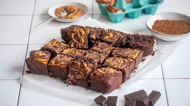 Un incontro di caratteri decisi, dove l'intensità profonda del cioccolato fondente si piega alla rustica dolcezza del burro di arachidi, in un gioco di contrasti che seduce al primo morso. Questi brownies promettono e mantengono: una golosità strutturata, capace di coniugare la morbidezza vellutata con il ricordo croccante della frutta secca tostata. La tecnica del marmoraggio non è solo un vezzo estetico, ma la firma di un equilibrio perfetto, dove i due protagonisti si avvolgono senza mai sopraffarsi.
