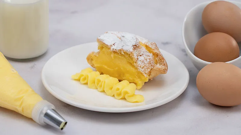 La magia risiede nell'equilibrio tra la cremosità vellutata, garantita dal duplice apporto di amido di riso e di mais, e la freschezza penetrante della scorza d'agrume, che lascia una scia luminosa sul palato. I tuorli, sapientemente legati allo zucchero, donano una ricchezza dorata e una struttura setosa che resiste alla perfezione al calore della zeppola appena fritta.