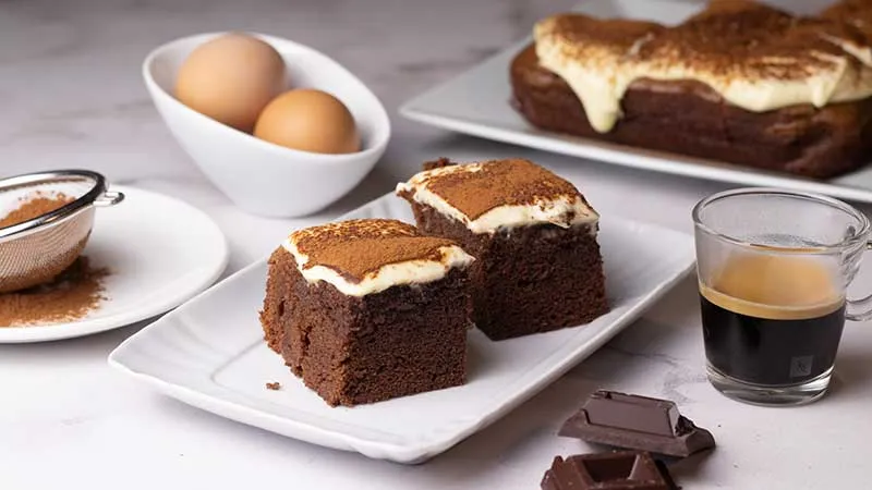 Immaginate l'incontro tra due icone del dessert: la densità vellutata del brownie e l'eleganza cremosa del tiramisù. Questo dolce non è una semplice somma, ma una promessa di carattere deciso, dove il cioccolato fondente si fonde con la nota profonda del caffè in un abbraccio indimenticabile. Il risultato è un'esperienza che seduce il palato con la sua doppia anima, robusta e al contempo sofisticata.