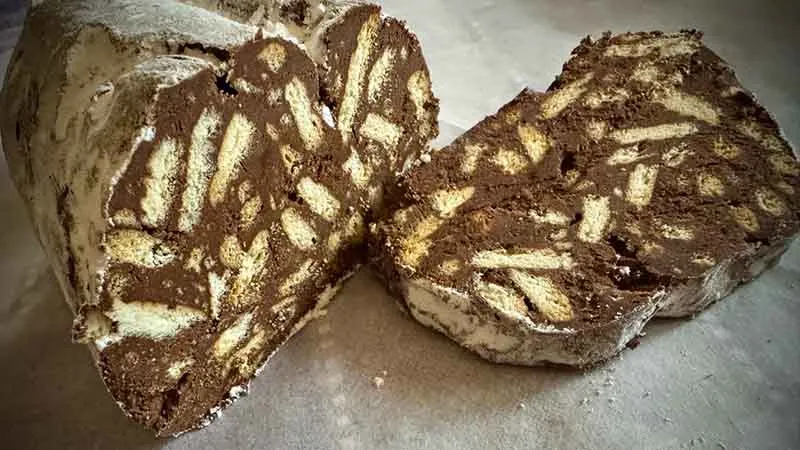 Il salame di cioccolato al mascarpone è un'audace reinterpretazione della tradizione dolciaria italiana, dove la rusticità della forma incontra la raffinatezza di un dessert che seduce al primo assaggio. Promette un'esperienza sensoriale che unisce la densa cremosità del mascarpone alla profondità terrosa del cacao, risolvendosi in un equilibrio perfetto tra intensità e delicatezza.