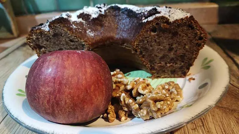 La ciambella con mele annurca e noci è un abbraccio autunnale che trasforma la semplicità in un'esperienza sensoriale memorabile. La sua promessa è racchiusa in una soffice corona dorata che nasconde un cuore umido e generoso, dove la dolcezza si fonde con note terrose e speziate in un equilibrio perfetto per risvegliare i sensi.