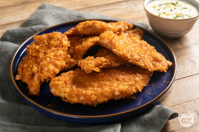 La magia risiede nel contrasto tra la tenerezza succosa del pollo, protetta da un velo leggero di farina e uovo, e l'involucro fragrante dei corn flakes non zuccherati, che in forno si trasforma in una corazza dorata e scricchiolante. La paprika dolce e le erbe aromatiche non si limitano a profumare, ma creano un'armonia calda che esalta la delicatezza della carne senza sopraffarla, mentre la nota tostata dei cereali aggiunge profondità.