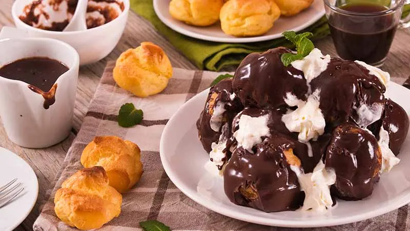 I profiteroles rappresentano l'apoteosi della pasticceria francese in formato morso: una promessa di leggerezza che si scioglie in un'esplosione di piacere. Questi bignè dalla crosta dorata e sottile racchiudono un cuore di nube vanigliata, pronti a cedere sotto la copertura di cioccolato fondente in un gioco di contrasti tra croccante e morbido, fresco e intenso.