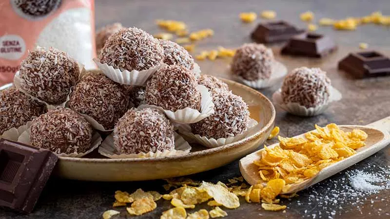 Il cocco rapè, come una nevicata finale, non è solo ornamento ma un soffio esotico che lega ogni morso con la sua polvere sottile e aromatica, bilanciando la profondità del cacao con una nota tropicale e leggera. Perfetti per concludere un pranzo informale o per animare un buffet, si offrono come soluzione di charme quando il forno riposa: la loro bellezza rustica e irregolare racconta la carezza delle mani che li hanno plasmati, promettendo refrigerio e un piacere immediato.