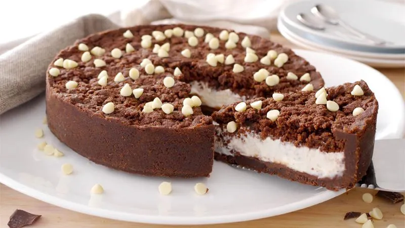 Un dessert che seduce con la sua doppia anima: la ferma eleganza del cioccolato fondente si scioglie nell'inedita carezza di una crema di ricotta e mascarpone, promettendo un'esperienza dove la ricchezza incontra una sorprendente leggerezza. La struttura, volutamente informale e 'sbriciolata', non è un semplice dettaglio estetico, ma un invito a scoprire strati di consistenze diverse in ogni cucchiaio.