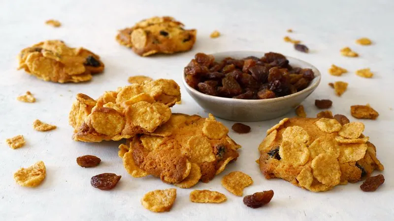 La magia risiede nell'uvetta, ammollata nel rum fino a gonfiarsi di aromi intensi e caramellati, che esplode in piccoli lampi dolci contro la base neutra della pasta frolla. I corn flakes, tostati in forno, aggiungono non solo una texture scricchiolante ma anche un retrogusto di cereale tostato che bilancia la dolcezza. Ogni morso è un dialogo tra il calore del rum, la dolcezza fruttata e la fragrante croccantezza.
