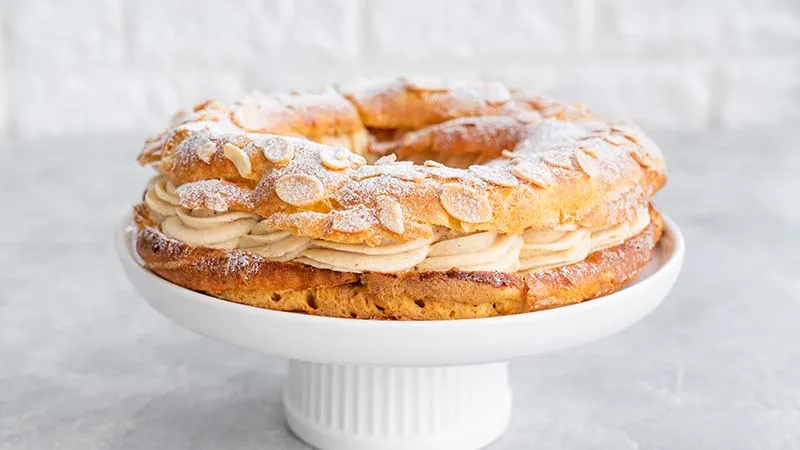 La Paris Brest è un abbraccio di delicatezza e generosità, dove la fragilità della pasta choux incontra l'opulenza di una crema che cede al cucchiaio con promessa di pura indulgenza. Questa ciambella dorata, nata per celebrare una corsa ciclistica, porta in tavola tutta l'audacia della pasticceria francese: un equilibrio perfetto tra struttura e morbidezza, tra tradizione e piacere immediato.