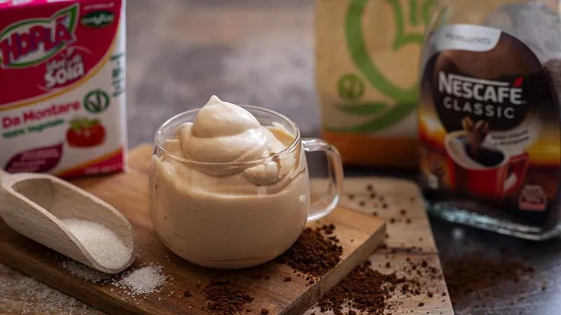 La magia nasce dal dialogo perfetto tra il caffè solubile, che dona note profonde e terrose, e la panna vegetale, capace di una consistenza vellutata e setosa che avvolge ogni nota. Lo zucchero di canna, con la sua caramellatura gentile, non copre ma esalta, aggiungendo un calore dorato che bilancia l'intensità del caffè senza appesantire.