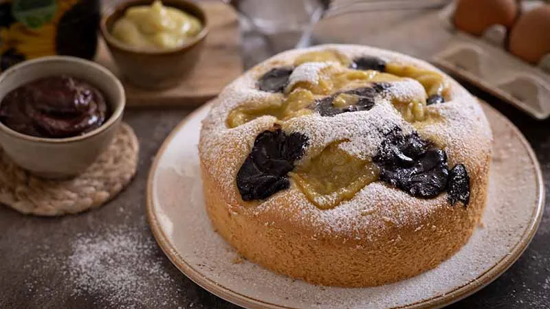 La Torta Nua con crema e cioccolato è un'allettante promessa di indulgenza: un dolce dall'anima rustica e dal cuore morbidamente cremoso che si rivela al primo taglio. Non una semplice torta, ma un'esperienza di contrasti dove la semplicità dell'impasto incontra la sorpresa di un ripieno vellutato che si forma magicamente in cottura.