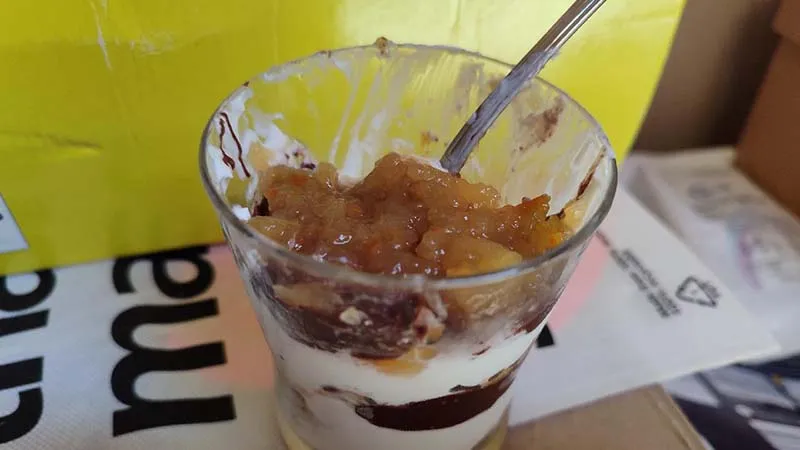 La magia risiede nel dialogo tra la nota acida e densa dello yogurt greco, che avvolge il palato con la sua consistenza vellutata, e la profondità amara del cioccolato fondente, che si scioglie in contrasti decisi. A rompere questa ricchezza, interviene la composta di albicocche: una vibrazione agrodolce e fruttata che porta luce e freschezza, mentre la base di biscotti secchi aggiunge una piacevole nota croccante e tostata.