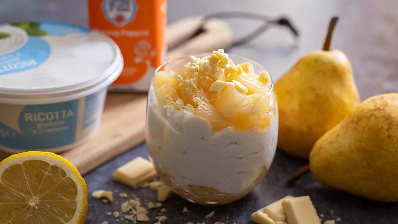 La magia risiede nel dialogo tra ingredienti nobili: la ricotta, burrosa e setosa, viene avvolta dalla dolcezza carnosa delle pere, leggermente caramellate per esaltarne il succo e conferire una nota di calore ambrato. Il cioccolato bianco aggiunge un tocco di rotondità vellutata, mentre la scorza di limone interviene con un guizzo agrumato che rischiara l'insieme, creando un contrasto luminoso e memorabile.