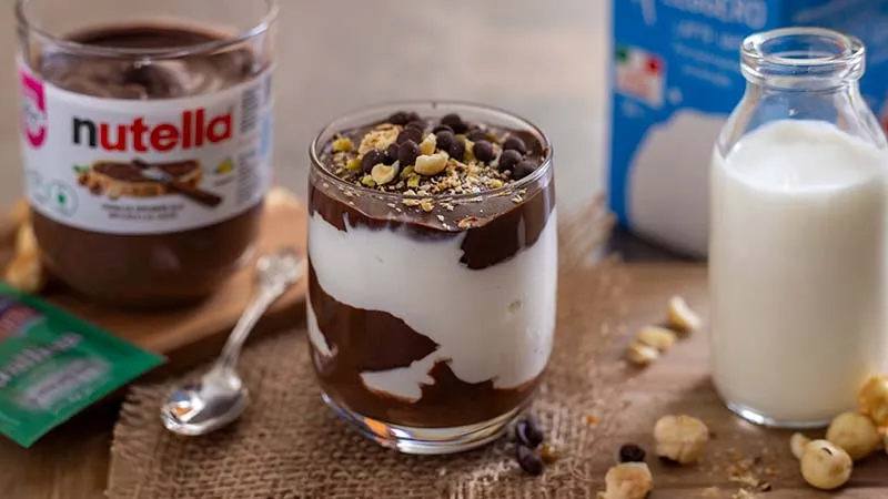 Un dessert che seduce con la sua doppia anima: la delicatezza vellutata della crema al latte incontra l'intensità rustica della Nutella in un gioco di strati che promette piacere ad ogni cucchiaioata. Questa coppetta è un abbraccio goloso, dove la semplicità degli ingredienti si trasforma in un'esperienza sensoriale raffinata e appagante.