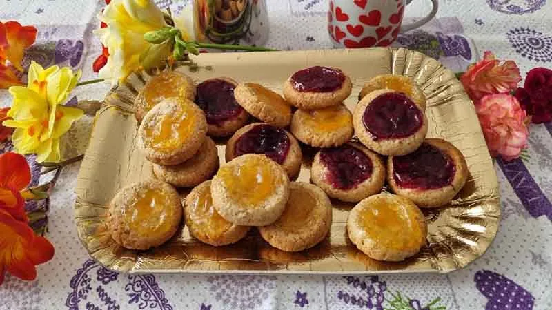 Un abbraccio dorato di pasta frolla, dove la rusticità semi-integrale incontra la dolcezza vibrante della marmellata. Questi frollini promettono un'esperienza sensoriale in bilico tra il comfort familiare e una nota di carattere, trasformando il semplice gesto della merenda in un piccolo rito di piacere autentico. La loro anima è duplice: la friabilità delicata della crosta esterna custodisce un cuore morbido e leggermente acidulo, che scioglie in bocca un concentrato di frutta.