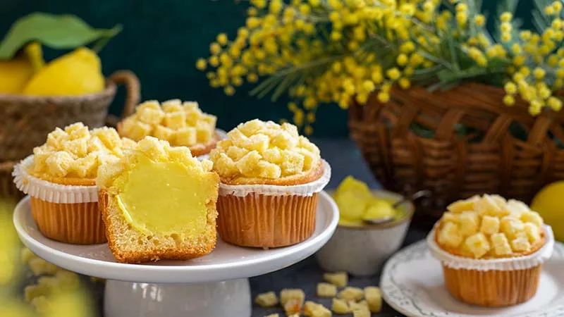 equilibrio tra la sofficità avvolgente dell'impasto e il cuore vibrante di una crema al limone dal carattere deciso ma mai invadente, che scioglie in bocca un'ondata di freschezza agrumata. La magia risiede nel contrasto sensoriale: la morbidezza umida del muffin cede il passo alla cremosità setosa e intensamente profumata della farcitura, dove l'acidulo brillante del limone, esaltato dalla scorza, viene magistralmente bilanciato dalla dolcezza rotonda.