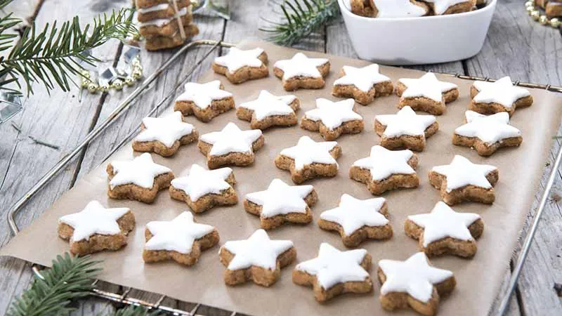 I Zimtsterne sono stelle di pasta di mandorle che racchiudono l'essenza stessa del Natale alpino: una promessa di eleganza rustica e calore speziato che si scioglie in un abbraccio di dolcezza sofisticata. La loro magia risiede nel perfetto equilibrio tra la ricchezza terrosa delle mandorle tostate e il fremito aromatico della cannella, un dialogo di sapori che evoca camini accesi e paesaggi innevati.