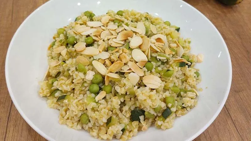 mediterranei che conquista al primo boccone: il bulgur con zucchine e piselli è un piatto unico dal carattere vibrante, dove la rusticità dei cereali incontra la freschezza primaverile degli ortaggi in una promessa di leggerezza e soddisfazione.