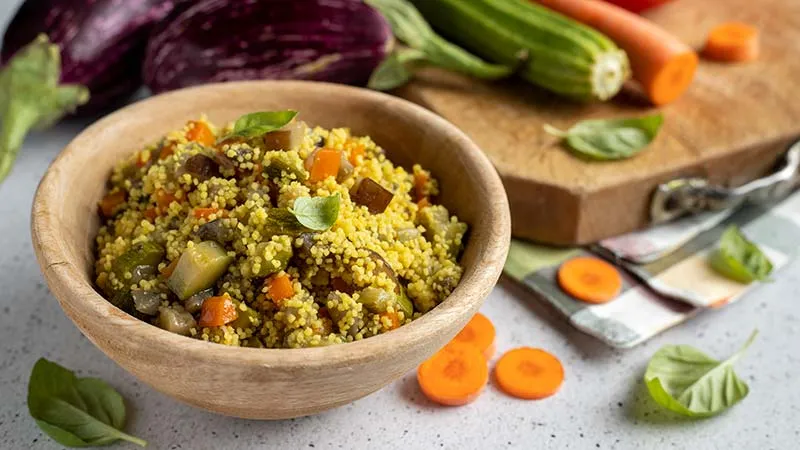 Il cous cous alle verdure è un viaggio sensoriale che unisce la morbida consistenza del semolino alla vibrante freschezza degli ortaggi di stagione, creando un piatto dal carattere generoso e autenticamente mediterraneo. Ogni boccone promette un equilibrio perfetto tra la delicatezza del cous cous e l'intensità terrosa delle verdure arrostite, avvolte da un bouquet di spezie che evoca i souk del Nord Africa.