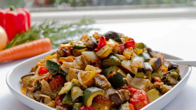 La magia risiede nel dialogo tra la dolcezza caramellata delle cipolle e dello scalogno, l'umami dei pomodori cotti a lungo e la consistenza vellutata che melanzane e zucchine raggiungono, contrastata dal lieve croccante finale del peperone. Un filo d'olio extravergine a crudo, insieme a un tocco finale di erbe aromatiche fresche, accende tutto con un tocco di freschezza erbacea e un fruttato leggero.