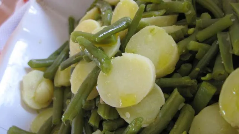 La magia nasce dal contrasto tra la dolcezza farinosa delle patate, che si sfaldano appena sotto i denti, e la croccantezza vibrante dei fagiolini, ancora pieni di vita. Su questo duetto, l'olio extravergine versato a crudo scivola come un manto lucente, esaltando con le sue note erbacee e leggermente amare la freschezza delle verdure, mentre il sale fino ne risveglia e definisce ogni sfumatura di sapore.