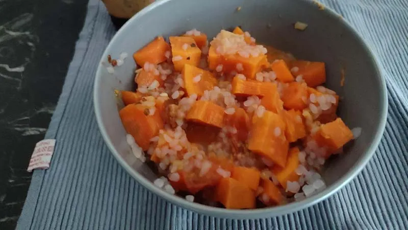 sugo vellutato e avvolgente che culla verdure dolci e tenere, dove il burro di arachidi non è un semplice ingrediente, ma l'anima profumata e rustica del piatto. La scelta del riso konjac, quasi trasparente e dalla consistenza delicatamente gommosa, trasforma questa ricetta di tradizione in un'esperienza moderna e sorprendentemente leggera.