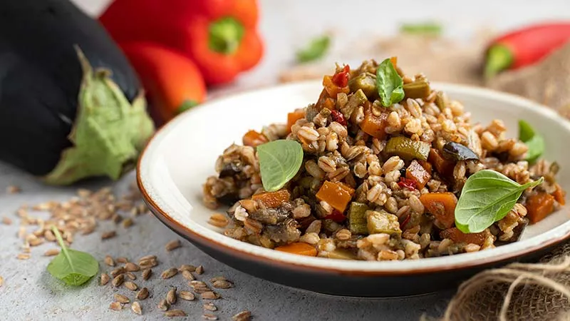 La magia risiede nei contrasti sapientemente bilanciati: la dolcezza caramellata delle carote e delle cipolle stufate dialoga con il tocco terroso delle melanzane, mentre le zucchine e il peperone rosso regalano note fresche e una lieve croccantezza. L'olio extravergine, a crudo finale, lega il tutto con il suo filo d'oro, esaltando senza sopraffare, in un gioco di morbidezza del farro e vivacità delle verdure. Perfetto per un pranzo leggero ma sostanzioso o come contorno d'autore per una cena informale, si offre come soluzione elegante e pratica. Un piatto che nutre il corpo e soddisfa l'anima, lasciando in bocca il ricordo pulito e completo di una cucina sincera.