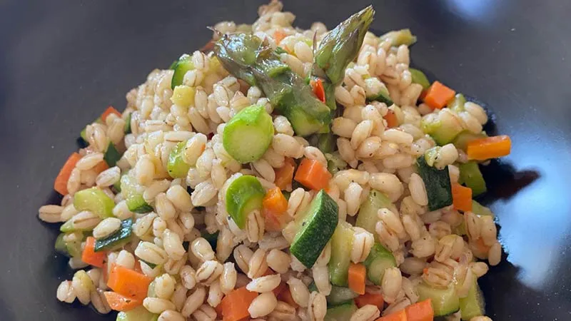 della consistenza e quella del sapore pulito. Qui non si tratta di un semplice accompagnamento, ma di un piatto unico dal carattere deciso, dove la morbidezza avvolgente dell'orzo dialoga in continuazione con il croccante delle verdure, creando un'esperienza tattile in ogni boccone.