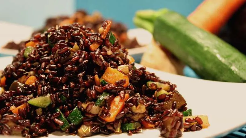 Un'armonia di terre e sapori che si incontrano in una composizione elegante e sostanziosa: l'insalata di riso venere e tacchino è un manifesto di equilibrio, dove la profondità terrosa del cereale nero dialoga con la delicatezza delle proteine magre, promettendo un'esperienza che nutre il corpo senza appesantire lo spirito. La consistenza soda e leggermente croccante del riso venere fa da tappeto a tocchetti di tacchino teneri e succosi, mentre le rondelle di carote e zucchine, appena scottate, conservano un piacevole morso vegetale.