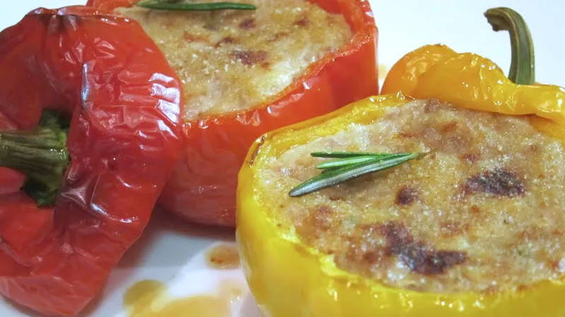 La magia risiede nei contrasti: la morbidezza succosa della polpa di peperone racchiude un composto dove la carne macinata si lega al pane raffermo ammollato, mentre le mandorle tostate offrono una piacevole nota croccante e un retrogusto tostato. Il parmigiano grattugiato, sciogliendosi, dona un tocco sapido e cremoso che lega tutti gli ingredienti in un insieme armonioso.