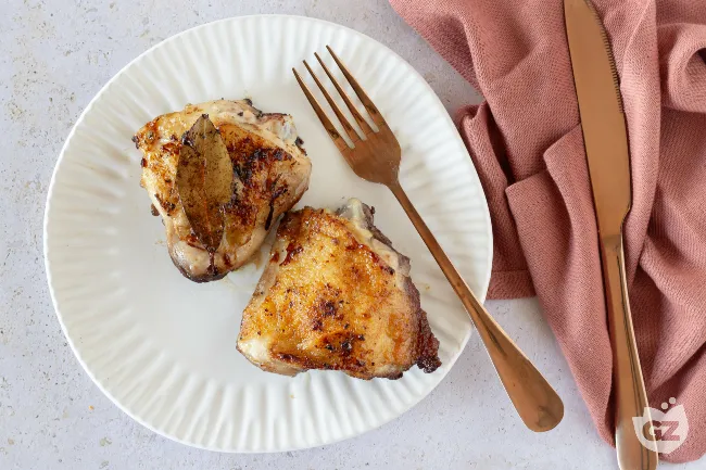 La magia avviene nell'incontro tra l'amarognolo del vino, che si caramella leggermente in cottura, e la dolcezza naturale del pollo, esaltata dall'olio extravergine a crudo. L'aglio schiacciato e le erbe aromatiche – il timo pungente e l'alloro terroso – non si perdono nel fondo, ma emergono come note distinte che completano il bouquet. Ogni morso rivela una carne tenerissima che si stacca dall'osso, avvolta da una salsa setosa e intensamente profumata.