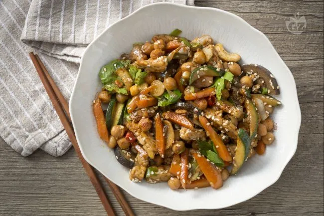 Un viaggio sensoriale che unisce la robustezza della terra alla vibrante freschezza asiatica: il tempeh alle verdure con ceci è una sinfonia di consistenze e sapori audaci. Questo piatto promette non solo un'esperienza nutritiva profondamente soddisfacente, ma anche un'esplorazione culinaria dove l'umami del tempeh fermentato dialoga con la dolcezza caramellata delle verdure saltate.