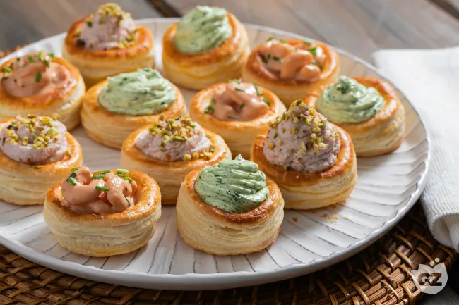 Perfetti per un aperitivo d'autore o come entrée di un pranzo festivo, questi vol-au-vent si prestano a essere personalizzati senza perdere la loro essenza. Il risultato finale è un piatto che conquista prima con l'estetica scultorea, poi con l'esplosione di sapori che si compongono armoniosamente, lasciando in bocca il ricordo persistente della croccantezza e della cremosità in perfetto dialogo.