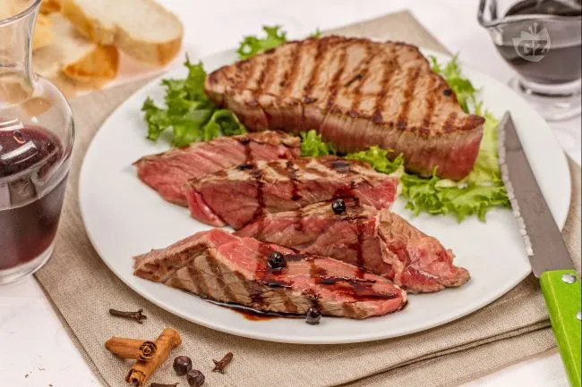 La magia risiede nel dialogo tra il calore dolce della cannella, la punta vibrante dei chiodi di garofano e le note resinose del ginepro, che nell'aceto balsamico trovano un tramonto agrodolce. Il risultato è un contrasto magistrale: la superficie della tagliata, croccante e pepata, cede a un cuore succoso che si fonde con la salsa, liscia e setosa, in un abbraccio di sapori profondi e persistenti.