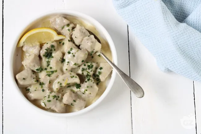 cremoso e irresistibile. È un piatto che promette e mantiene: una promessa di freschezza immediata e di comfort delicato, capace di trasformare pochi ingredienti in un'esperienza raffinata. La magia risiede nell'equilibrio perfetto tra la delicatezza del vitello e il carattere brillante del limone, un incontro che parla di primavera e di tavole curate con amore. La salsa, liscia e avvolgente, lega ogni boccone in una sinfonia di sapori dove l'acido fruttato non grida mai, ma canta con armonia.
