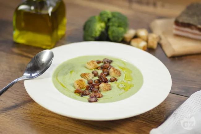 Il segreto risiede nell'equilibrio tra la cremosità vellutata dei broccoli, addolcita dalla panna fresca e arricchita dal Parmigiano Reggiano DOP che scioglie note complesse, e l'esplosione croccante dei crostini di pancarrè. Su tutto, la pancetta tesa si trasforma in un guarnizione dorata e friabile, rilasciando un tocco sapido che taglia la dolcezza della crema con precisione chirurgica. L'olio extravergine d'oliva, a crudo, lega gli elementi con un filo d'oro fruttato.