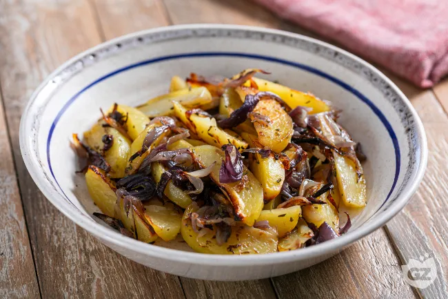 contorno, ma una promessa di comfort mediterraneo, dove la rusticità incontra una squisita armonia di sapori. La magia avviene in cottura: l'amido delle patate si trasforma in una crosta croccante, mentre le cipolle rosse si afflosciano, rilasciando la loro dolcezza intrinseca che si lega all'amaro aromatico del rosmarino.