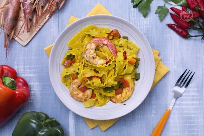 Un'ode mediterranea che danza tra il mare e l'orto, dove le reginette – con le loro eleganti increspature – diventano il palcoscenico perfetto per un incontro di caratteri decisi ma armoniosi. Questo piatto promette una raffinatezza accessibile, un viaggio sensoriale che parte dalla dolcezza carnosa dei gamberi e si conclude con il calore dorato dello zafferano, senza mai perdere l'anima rustica e generosa della cucina di casa.