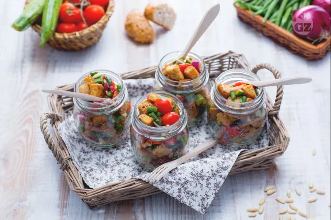 Ideale per un pranzo estivo all'aperto o come piatto unico elegante, questa panzanella croccante unisce la praticità della preparazione in anticipo all'effetto scenografico di un piatto colorato e profumato, che celebra il meglio dell'orto in ogni boccone.